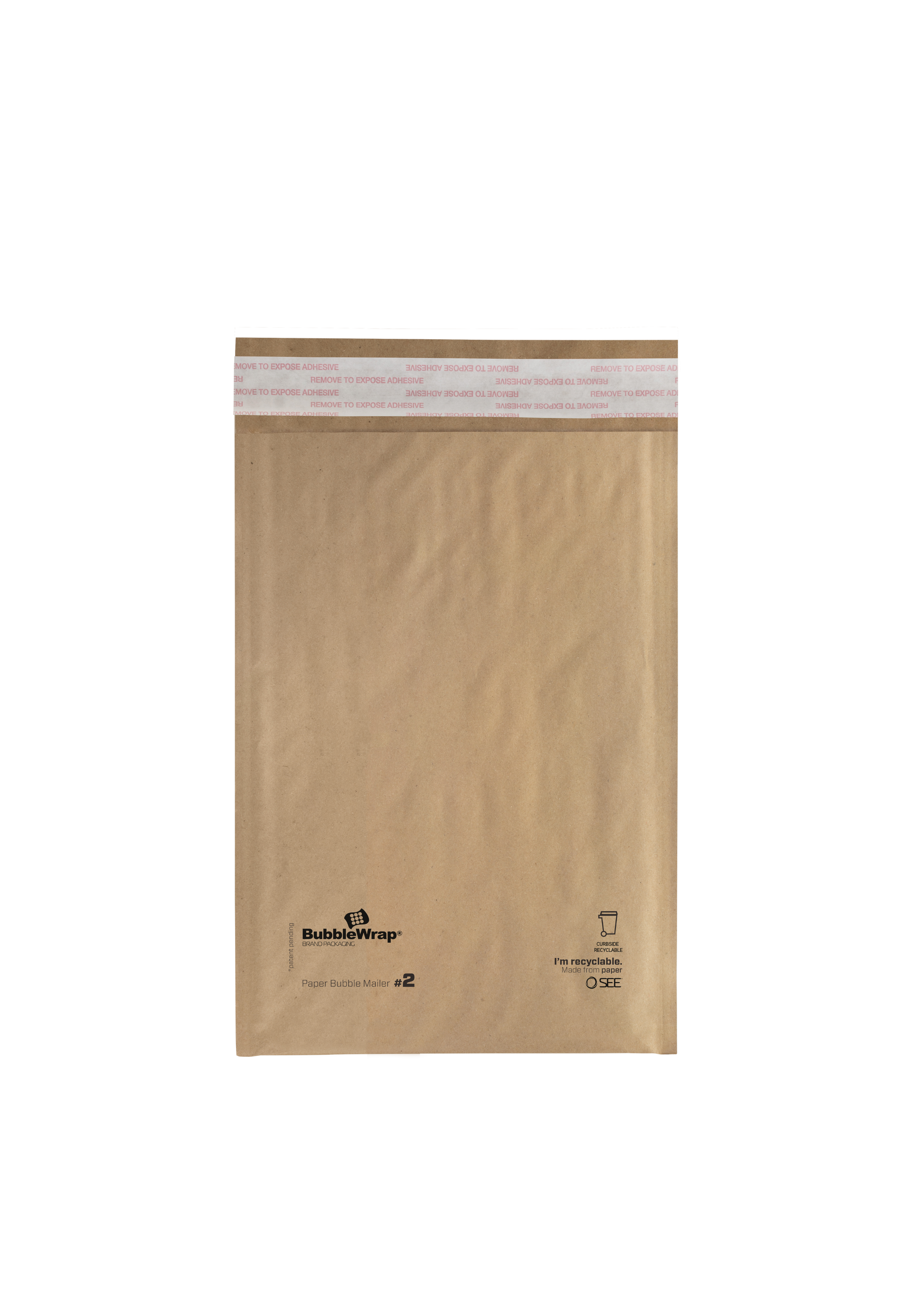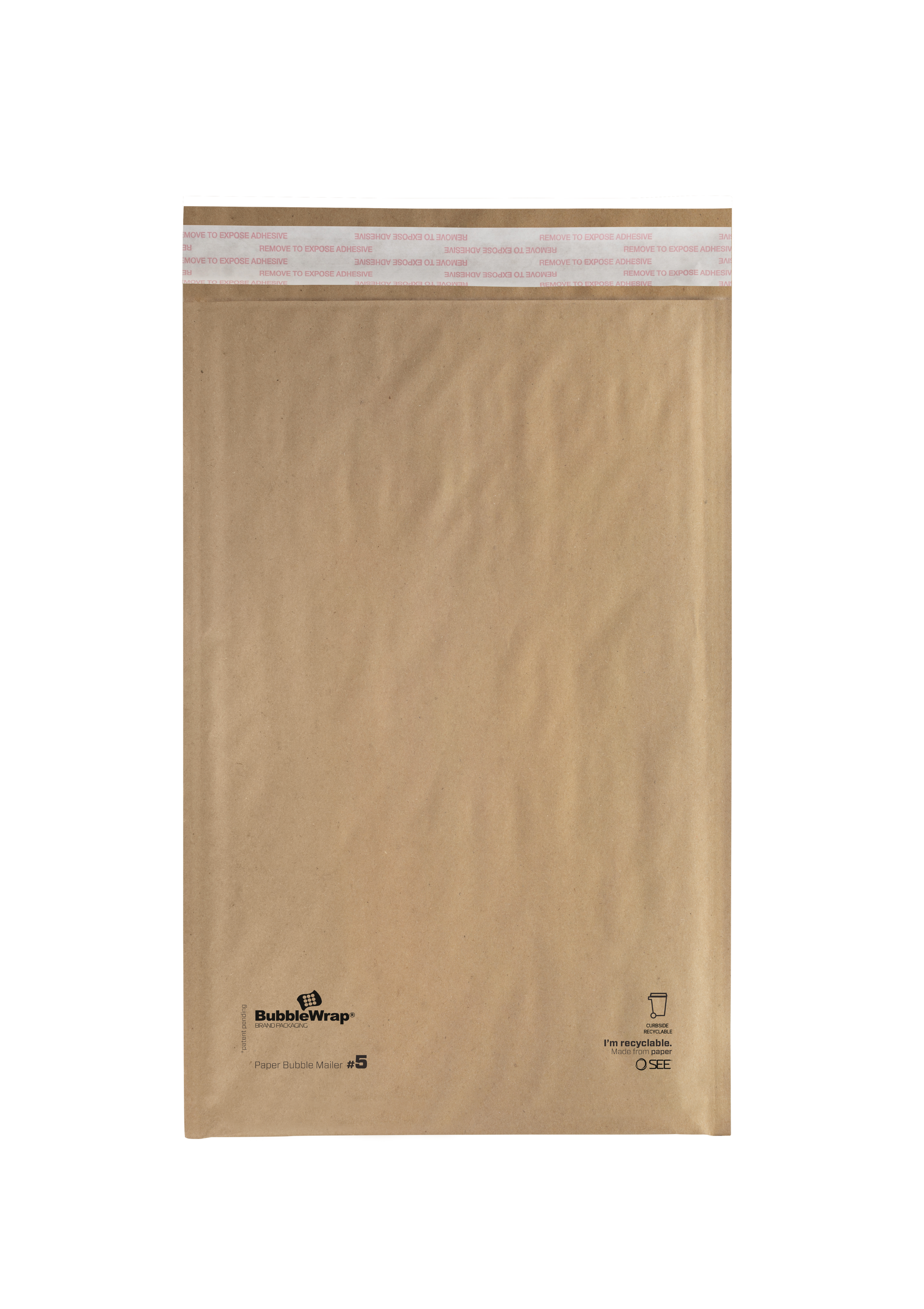 These paper mailers are the newest innovation in our discrete mailer portfolio, with inner padding constructed of a kraft paper material that mimics BUBBLE WRAP® brand cushioning. Protect products during shipment with a double layer of protection and delight consumers with curbside recyclable packaging materials.